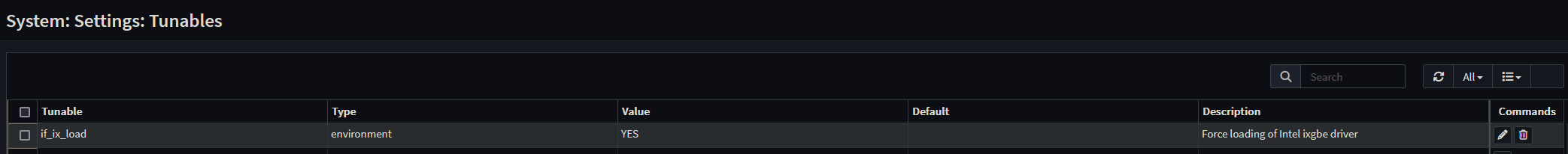 I even noted that the original if_ix.ko drivers were not loaded (but I have not found out yet which driver was “in charge” of the X553s then), and tried to “force load” the drivers (by using the “System Tunables” and setting “if_ix_load” to “YES“)…